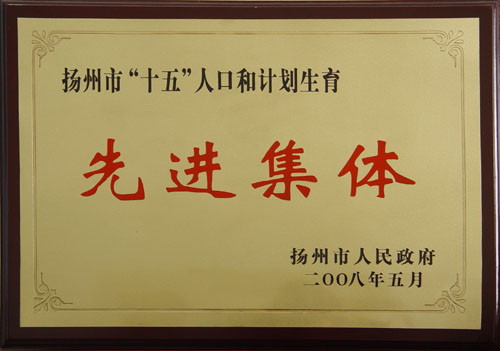 2008年度揚(yáng)州市人民政府“十五”人口和計(jì)劃生育先進(jìn)集體
