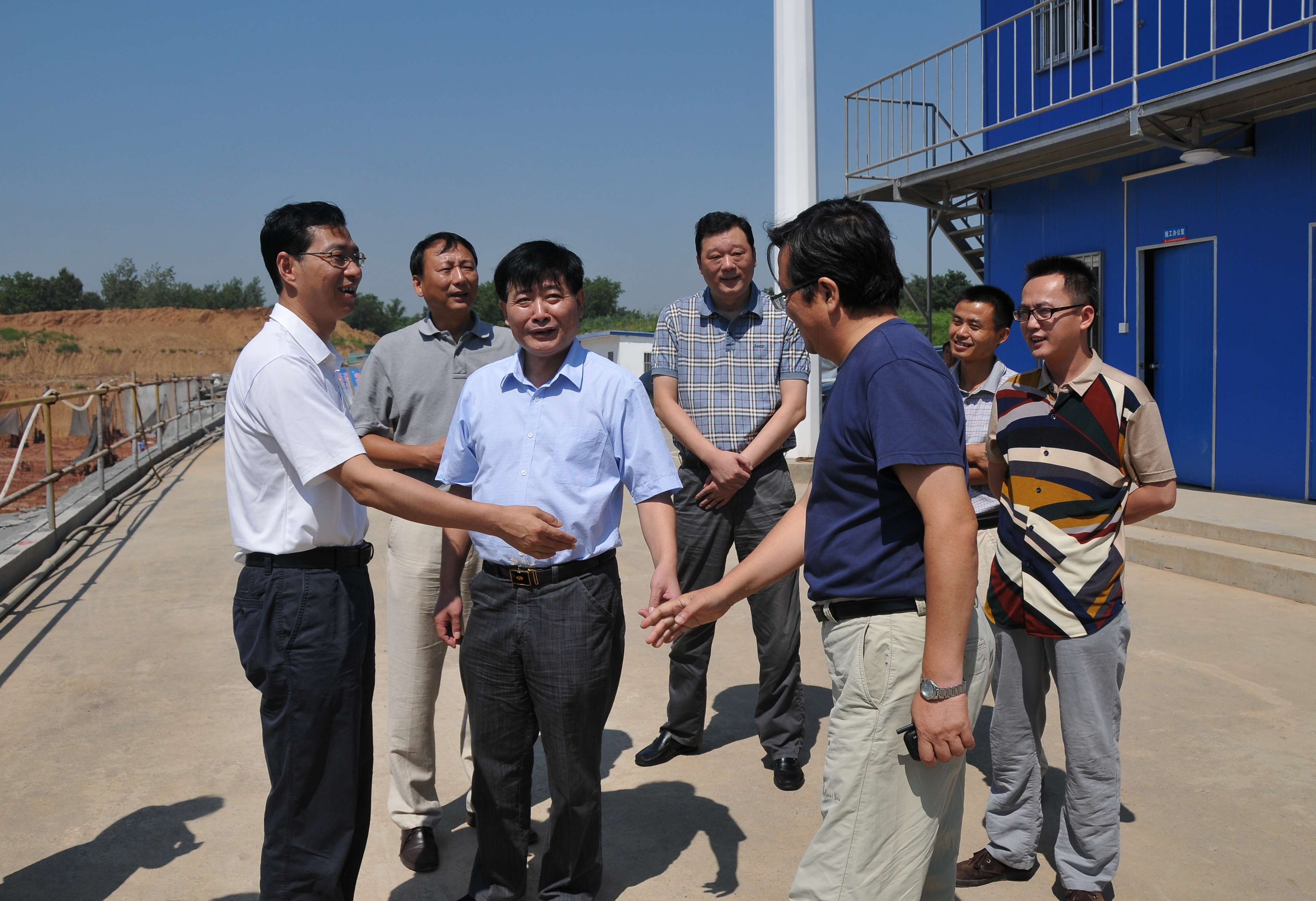 8月7日上午,市交通產(chǎn)業(yè)集團新任董事長、總經(jīng)理、黨委書記周正權(quán),副總經(jīng)理王寧生、王進一行,頂著烈日,冒著高溫,來到揚州西部交通客運樞紐建設(shè)工地,慰問堅守在一線的工程建設(shè)者,并送上飲料和慰問金。集團公司總經(jīng)理、黨委書記吳忠俊匯報了工程建設(shè)進展情況。