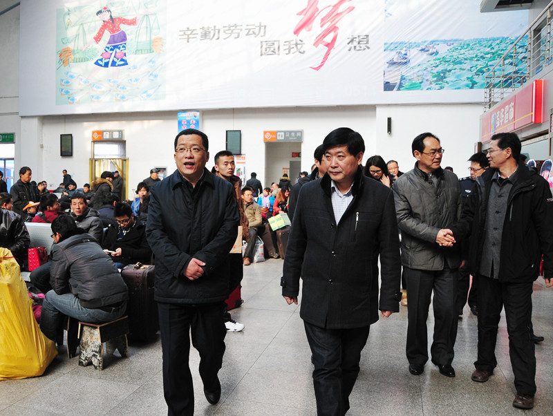 春節(jié)將至,為確保生產(chǎn)安全,讓群眾過一個(gè)歡樂祥和的節(jié)日,1月26日下午,市委常委、常務(wù)副市長丁純帶領(lǐng)市公安局、安監(jiān)局等相關(guān)部門負(fù)責(zé)人,來到揚(yáng)州站檢查春運(yùn)情況,向奮戰(zhàn)在春運(yùn)一線的干部職工表示慰問。
