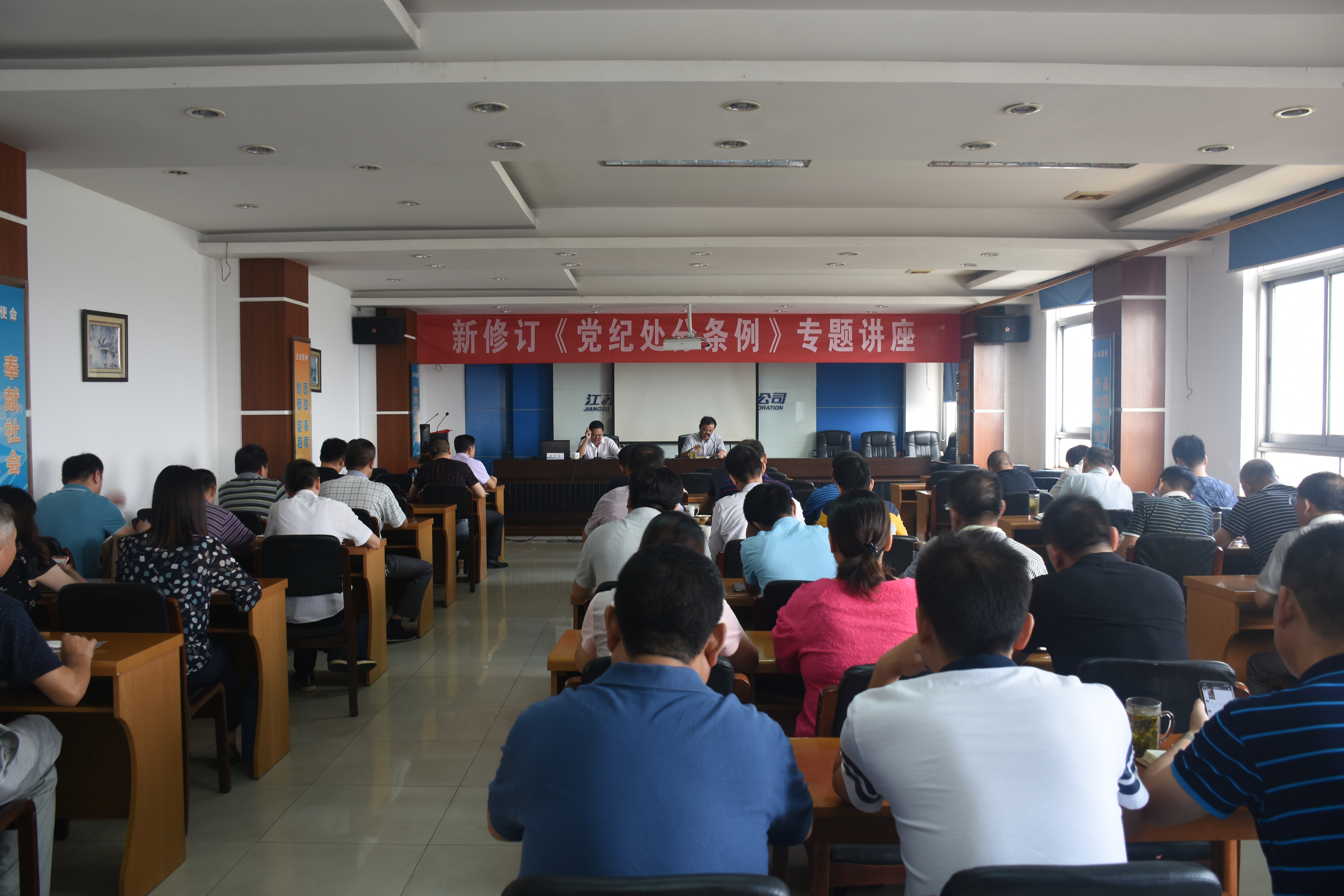 9月19日上午,集團公司邀請市紀委監(jiān)委第十紀檢監(jiān)察組陳世信書記對于新修訂的《中國共產(chǎn)黨紀律處分條例》進行解讀。市交通產(chǎn)業(yè)集團副總經(jīng)理兼揚汽集團黨委書記、董事長、總經(jīng)理曹遠志,黨委副書記顧懷,副總經(jīng)理談衛(wèi)國、陳家宏、張金明以及集團公司中層干部及處室黨員參加了專題講座。