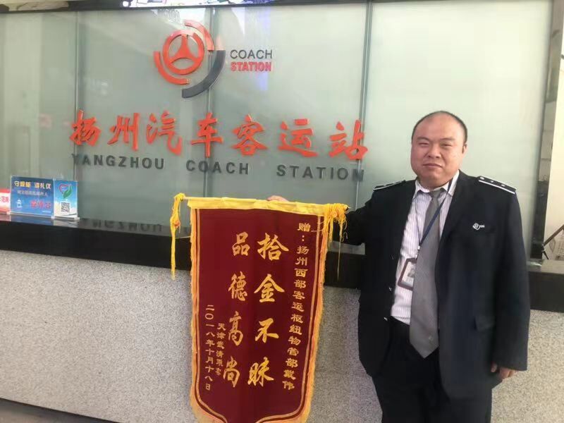 今天上午一早,揚(yáng)州西部樞紐客運(yùn)站站長(zhǎng)室就收到了來自天津市武清區(qū)市民朱朝艷郵來的錦旗和熱情洋溢的感謝信,感謝揚(yáng)州站員工戴偉拾金不昧的高尚品德。