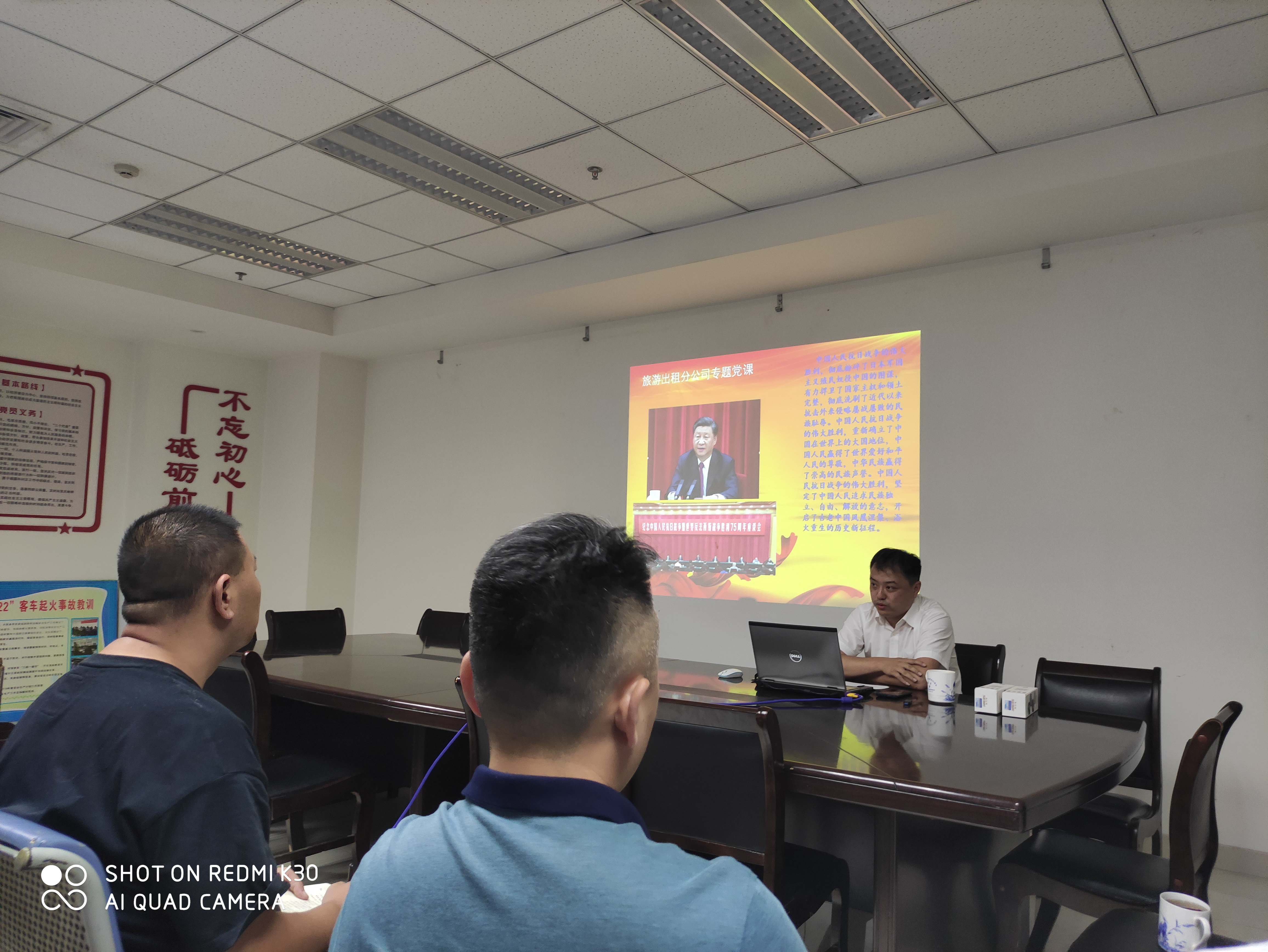 2020是中國人民抗日戰(zhàn)爭暨世界反法西斯戰(zhàn)爭勝利75周年。為宣傳抗日戰(zhàn)爭勝利的重大意義及中國人民在抗日戰(zhàn)爭中所表現(xiàn)出的不怕犧牲、前赴后繼的愛國主義精神,進(jìn)一步增強(qiáng)黨員的愛國主義情感,引導(dǎo)職工牢記歷史、珍惜和平。9月4日,旅游出租分公司黨支部舉辦了“勿忘歷史,緬懷先烈,繼往開來”專題黨課,由支部書記趙磊主講,分公司領(lǐng)導(dǎo)班子、黨員、入黨積極分子等16人參加了學(xué)習(xí)。
