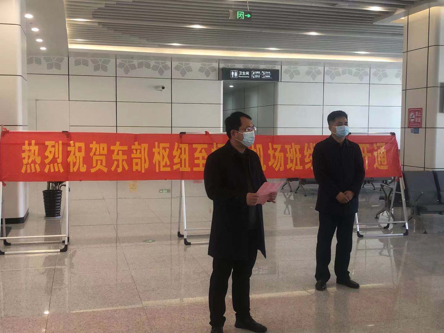在東部樞紐交通中心現(xiàn)場(chǎng),舉行了簡(jiǎn)短的開(kāi)通儀式,交通產(chǎn)業(yè)集團(tuán)副總經(jīng)理、揚(yáng)汽集團(tuán)黨委書(shū)記、董事長(zhǎng)龔宇峰和揚(yáng)州泰州國(guó)際機(jī)場(chǎng)副總經(jīng)理徐長(zhǎng)富出席了班線開(kāi)通儀式。龔宇峰董事長(zhǎng)在致辭中表示,在西站、東站和東部樞紐設(shè)立揚(yáng)泰機(jī)場(chǎng)候機(jī)樓,是認(rèn)真落實(shí)市委市政府《關(guān)于做好2020年民生幸福工程的通知》文件精神的重要工程,是滿足人民多層次多樣化民生需求,不斷提升城市客運(yùn)接駁換乘水平的重要舉措。隨著東站和東部樞紐候機(jī)樓的設(shè)立以及機(jī)場(chǎng)班線的開(kāi)通,揚(yáng)泰機(jī)場(chǎng)在市區(qū)的客運(yùn)服務(wù)網(wǎng)絡(luò)基本形成,高鐵和機(jī)場(chǎng)的零距離換乘成為現(xiàn)實(shí),機(jī)場(chǎng)與城市的距離將被進(jìn)一步拉近。