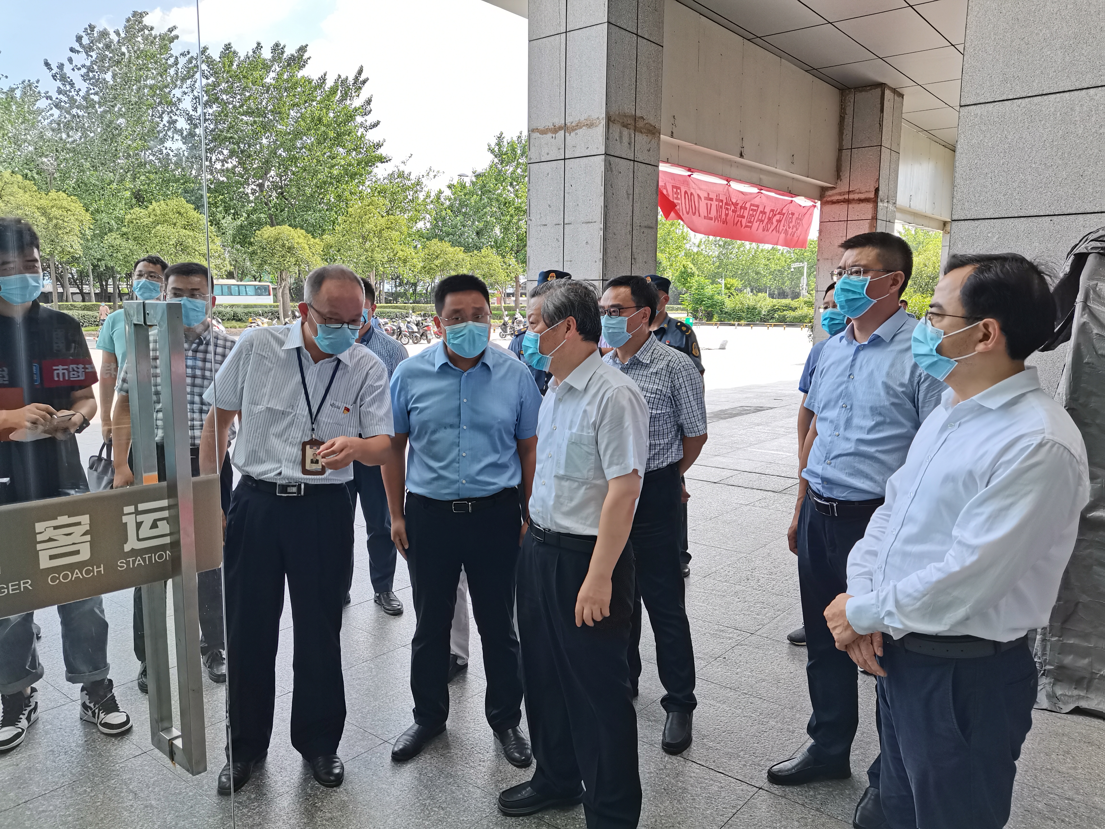 7月23日下午,市委副書(shū)記、統(tǒng)戰(zhàn)部部長(zhǎng)孔令俊帶隊(duì)來(lái)汽車東站檢查疫情防控工作,市人大常委會(huì)副主任范天恩、廣陵區(qū)委書(shū)記朱勇、區(qū)委副書(shū)記李斌、副區(qū)長(zhǎng)葉浩等領(lǐng)導(dǎo)陪同檢查。